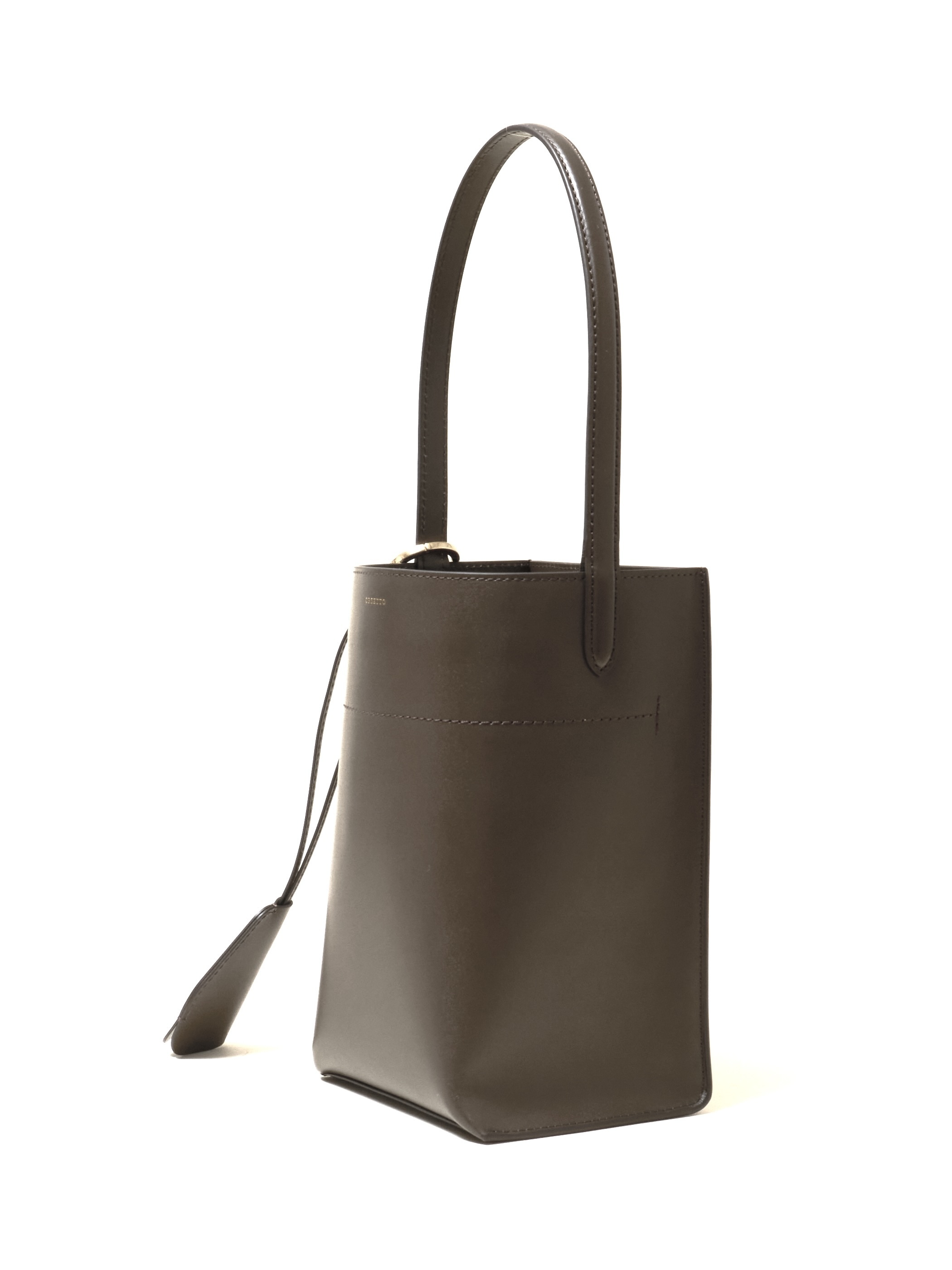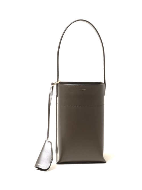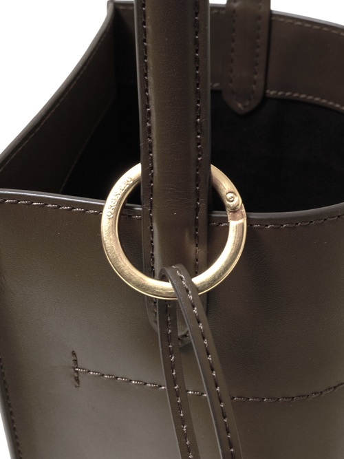 張りがあり滑らかな表面のスムースレザーを使用。タテ長バランスのフォルムが新鮮なバケツスタイルを展開。